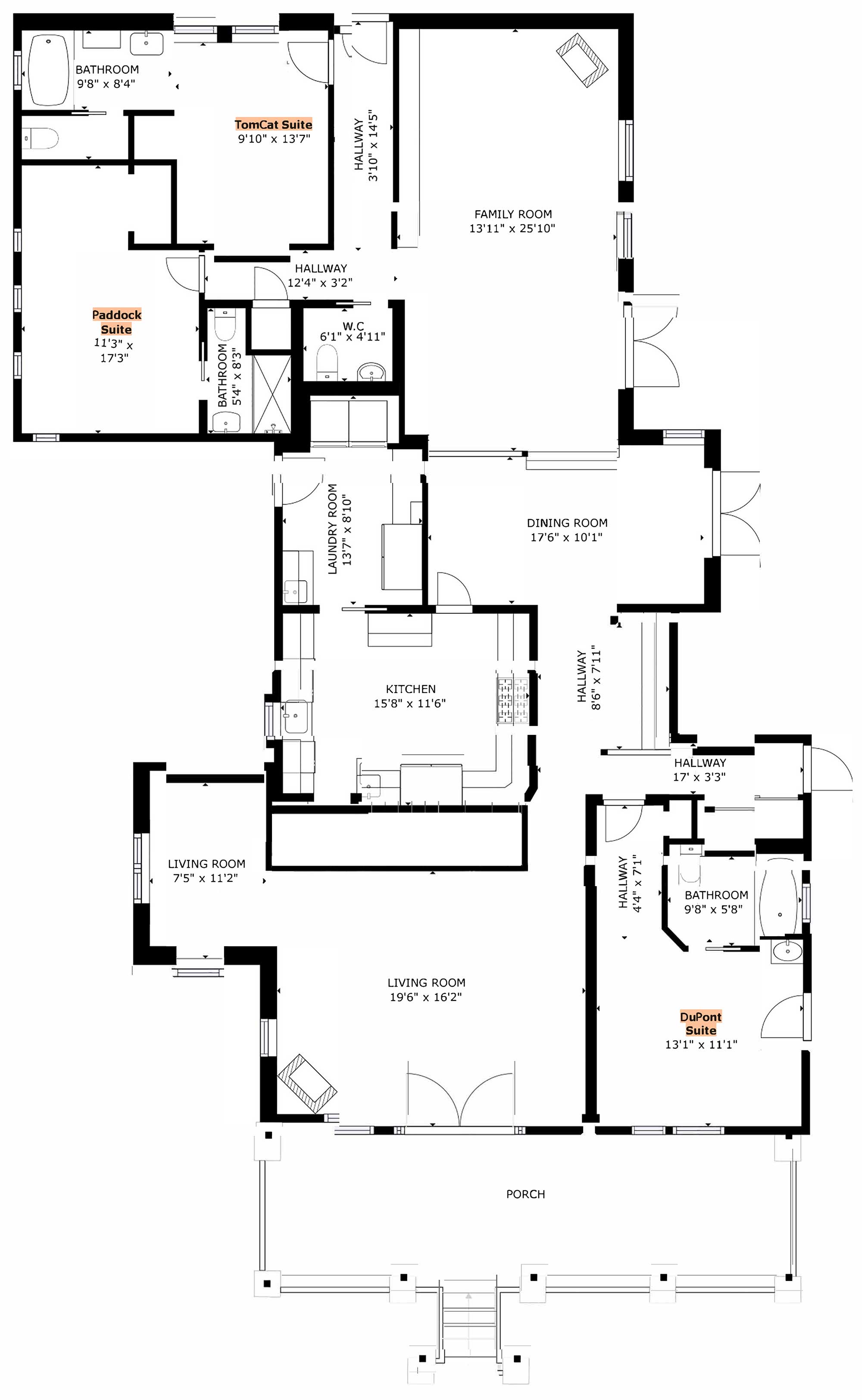 To learn more about renting the entire house, contact us. Creekside Haven includes 2.5 acres of peaceful, spacious gardens and property including the 3500 sf ft home built in 1944 and the 2500 sq ft heated barn for events.